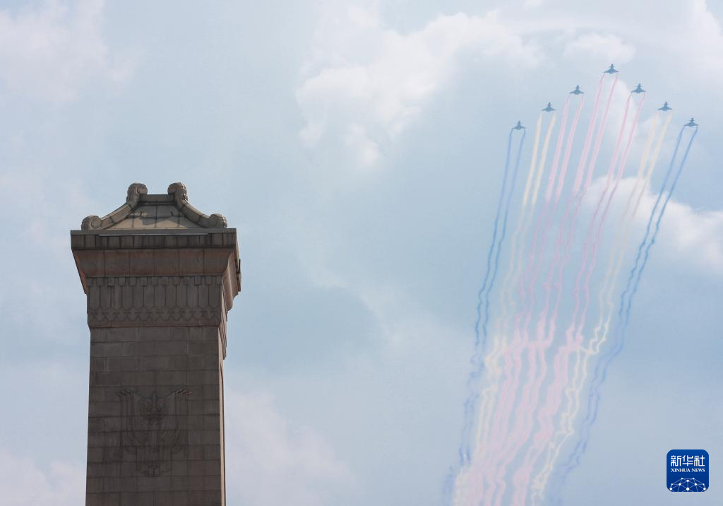 9月3日,紀(jì)念中國(guó)人民抗日戰(zhàn)爭(zhēng)暨世界反法西斯戰(zhàn)爭(zhēng)勝利80周年大會(huì)在北京隆重舉行。這是教練機(jī)梯隊(duì)通過天安門廣場(chǎng)。