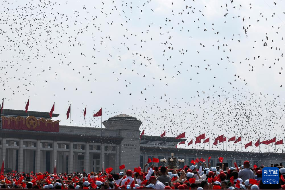 9月3日,紀(jì)念中國(guó)人民抗日戰(zhàn)爭(zhēng)暨世界反法西斯戰(zhàn)爭(zhēng)勝利80周年大會(huì)在北京隆重舉行。這是紀(jì)念大會(huì)現(xiàn)場(chǎng)放飛鴿子。