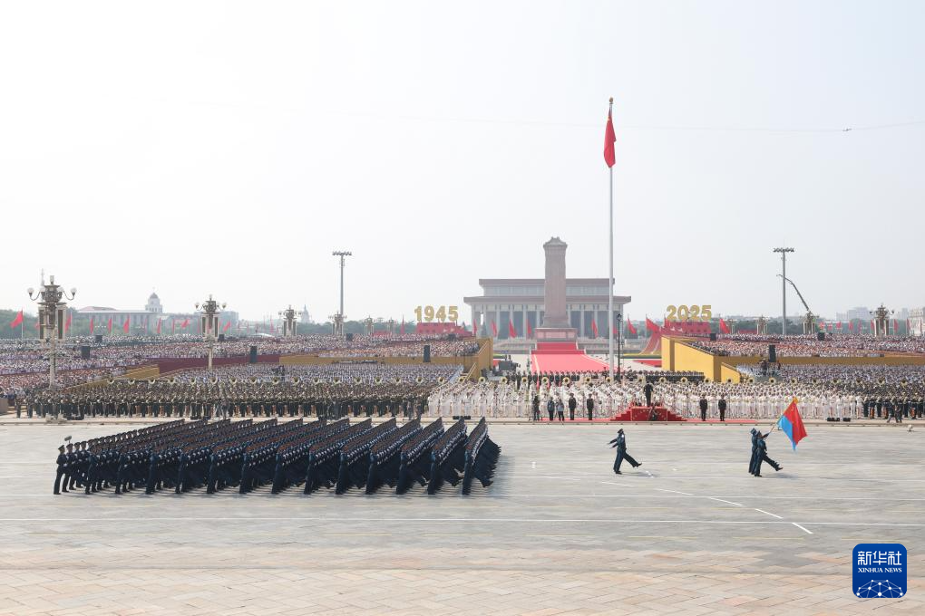 9月3日,紀(jì)念中國(guó)人民抗日戰(zhàn)爭(zhēng)暨世界反法西斯戰(zhàn)爭(zhēng)勝利80周年大會(huì)在北京隆重舉行。這是國(guó)旗護(hù)衛(wèi)隊(duì)在天安門廣場(chǎng)列隊(duì)。
