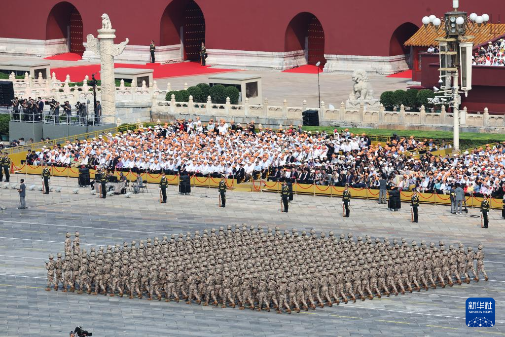 9月3日,紀(jì)念中國(guó)人民抗日戰(zhàn)爭(zhēng)暨世界反法西斯戰(zhàn)爭(zhēng)勝利80周年大會(huì)在北京隆重舉行。這是中國(guó)人民解放軍儀仗方隊(duì)走過天安門廣場(chǎng)。