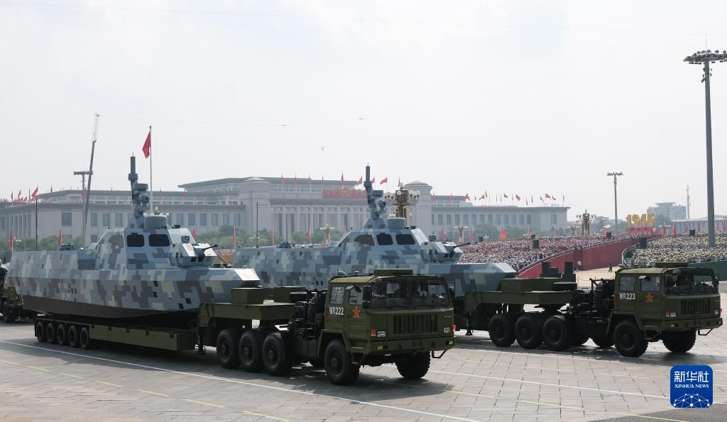 9月3日,紀(jì)念中國(guó)人民抗日戰(zhàn)爭(zhēng)暨世界反法西斯戰(zhàn)爭(zhēng)勝利80周年大會(huì)在北京隆重舉行。這是艦載防空武器方隊(duì)接受檢閱。