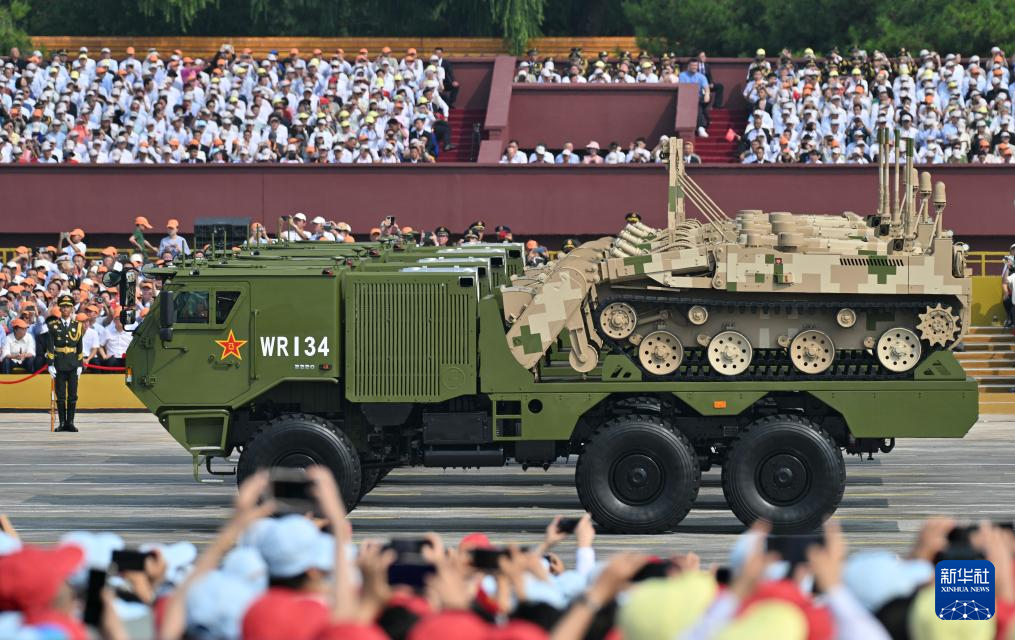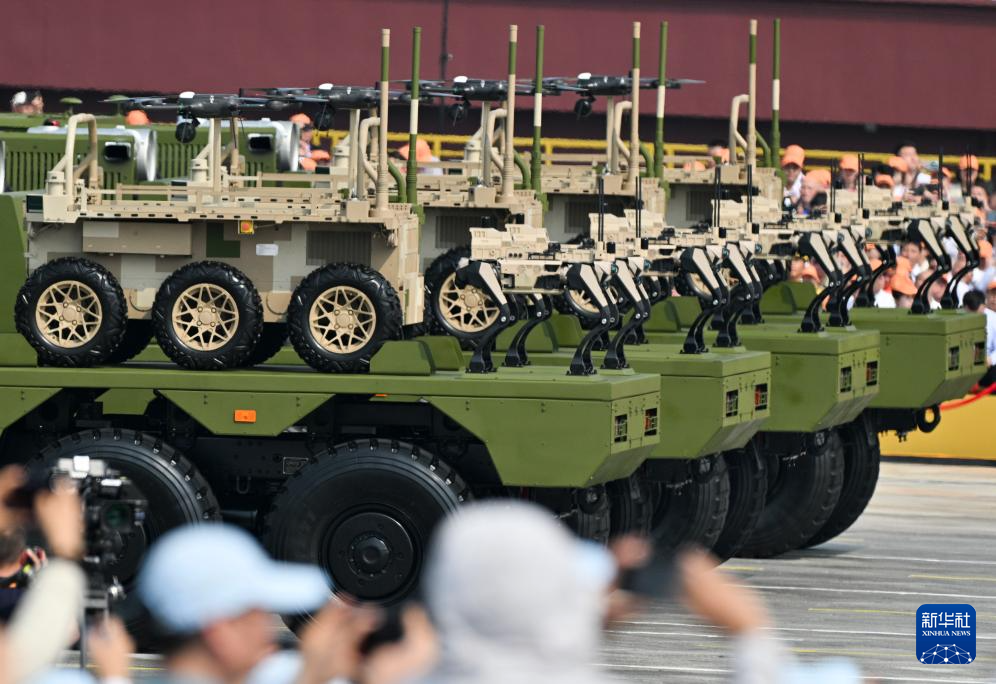 9月3日,紀(jì)念中國(guó)人民抗日戰(zhàn)爭(zhēng)暨世界反法西斯戰(zhàn)爭(zhēng)勝利80周年大會(huì)在北京隆重舉行。這是陸上無(wú)人作戰(zhàn)方隊(duì)通過(guò)天安門廣場(chǎng)。
