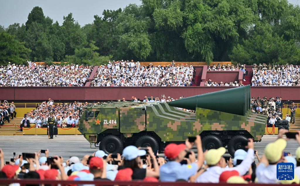 9月3日,紀(jì)念中國(guó)人民抗日戰(zhàn)爭(zhēng)暨世界反法西斯戰(zhàn)爭(zhēng)勝利80周年大會(huì)在北京隆重舉行。這是核導(dǎo)彈第二方隊(duì)通過(guò)天安門廣場(chǎng)。