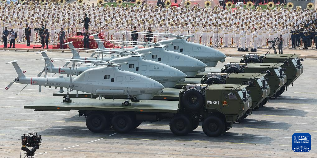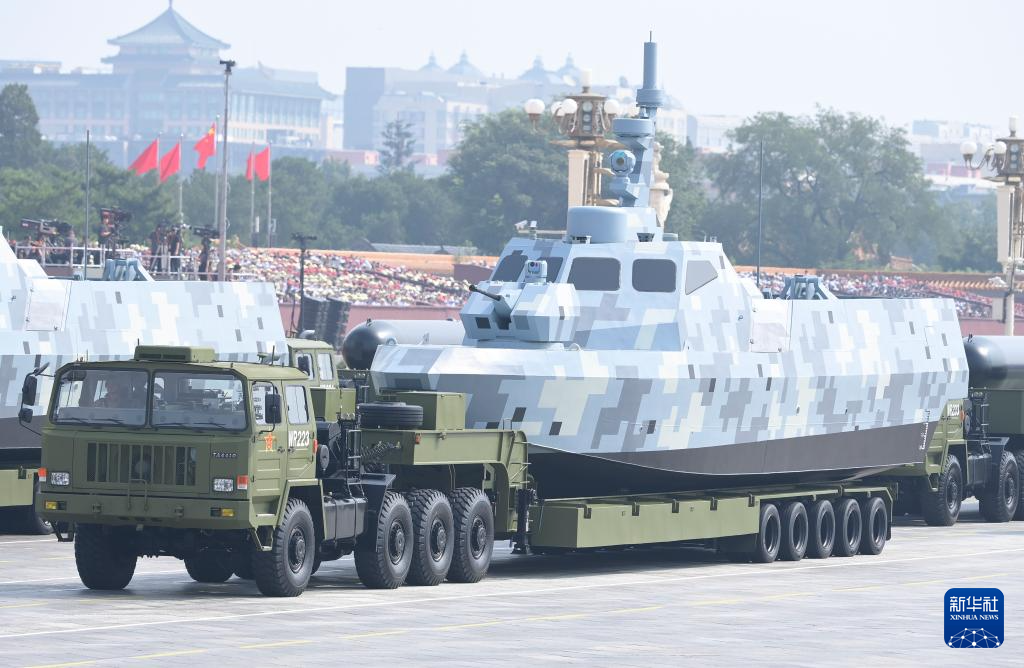 9月3日,紀(jì)念中國(guó)人民抗日戰(zhàn)爭(zhēng)暨世界反法西斯戰(zhàn)爭(zhēng)勝利80周年大會(huì)在北京隆重舉行。這是海上無(wú)人作戰(zhàn)方隊(duì)通過(guò)天安門廣場(chǎng)。