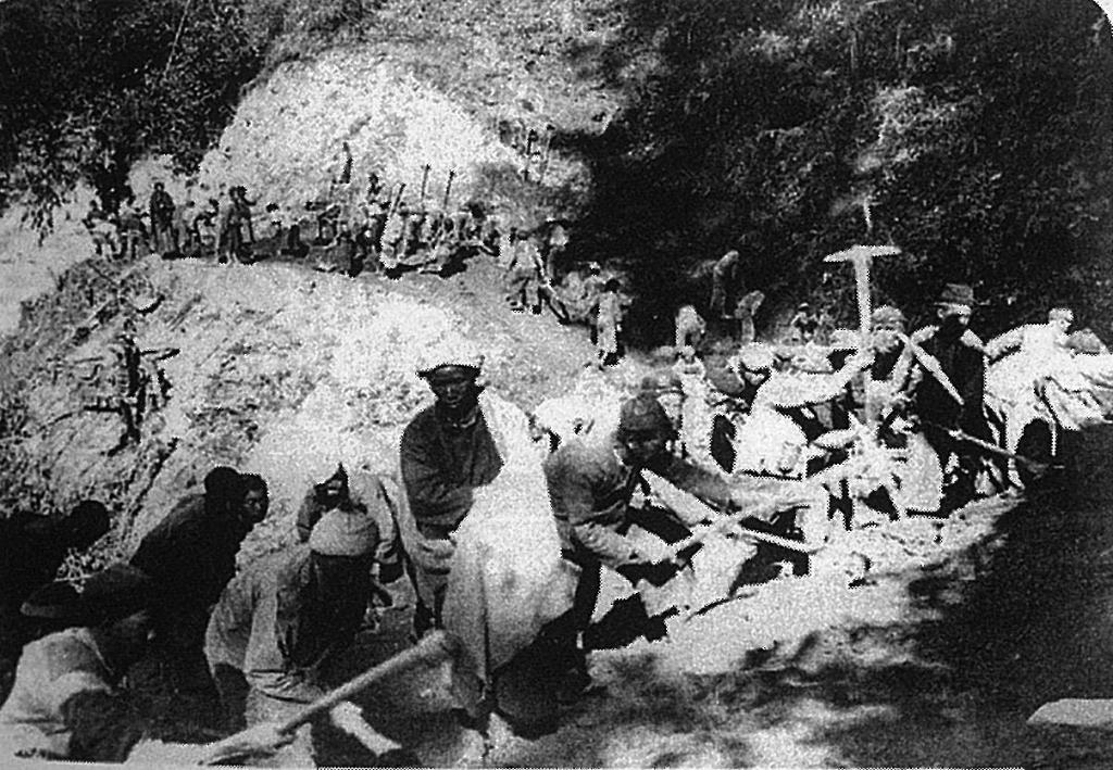 1938年,民眾在建設(shè)滇緬公路(資料照片)。 新華社發(fā)