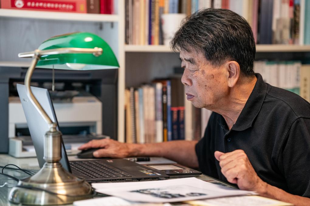 2025年7月17日,張云鵬在書房整理南僑機工相關(guān)資料。