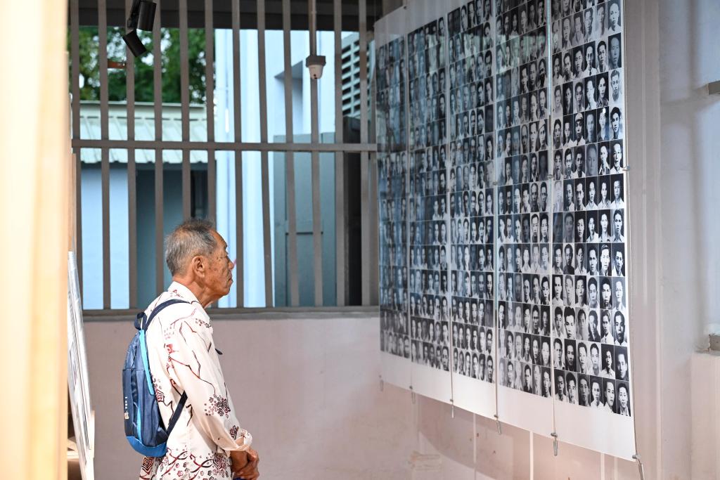 2025年8月14日,在剛揭幕的馬來西亞吉隆坡南僑機工紀念館內(nèi),一名老人觀看南僑機工照片墻。 新華社記者 程一恒 攝