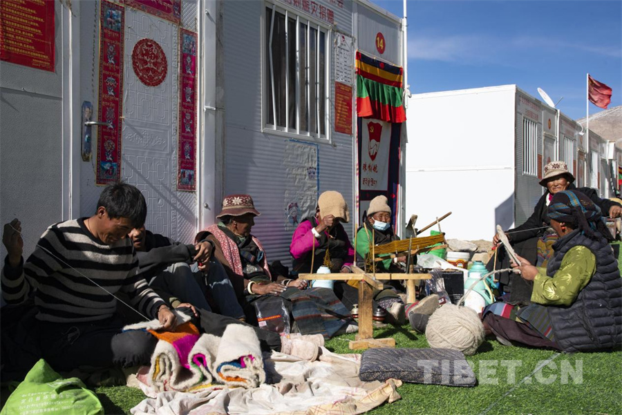 圖為定結(jié)縣郭加鄉(xiāng)白堆村村民在受災(zāi)安置點前紡織羊毛,大家已恢復(fù)正常生產(chǎn)生活秩序(攝于2025年2月27日)攝影:趙振宇