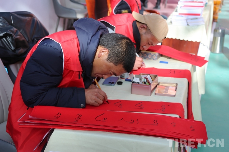 溫暖物資發(fā)放區(qū),保暖衣物、生活用品、學(xué)習(xí)用品等陸續(xù)送到群眾手中。書(shū)法老師現(xiàn)場(chǎng)揮毫,書(shū)寫(xiě)一幅幅寓意吉祥的藏文春聯(lián)贈(zèng)予鄉(xiāng)親,為即將到來(lái)的新春增添濃濃年味與文化氣息。