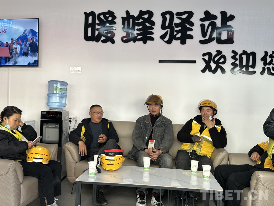圖為墨脫縣外賣員在“暖蜂驛站”休息聊天