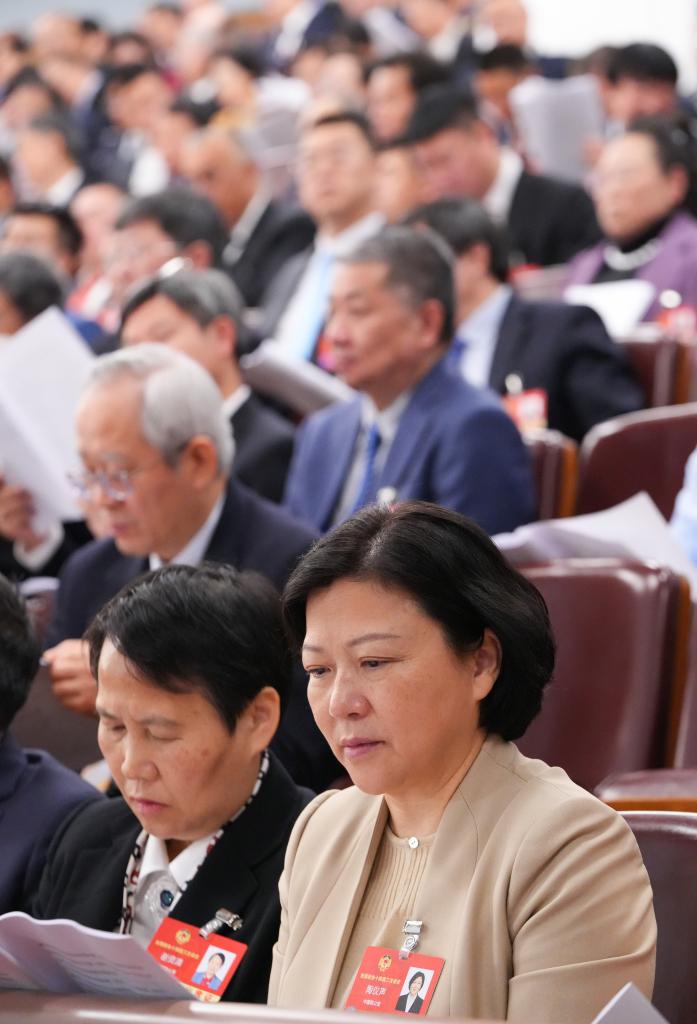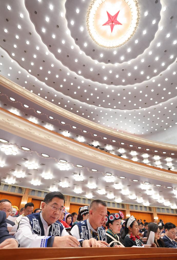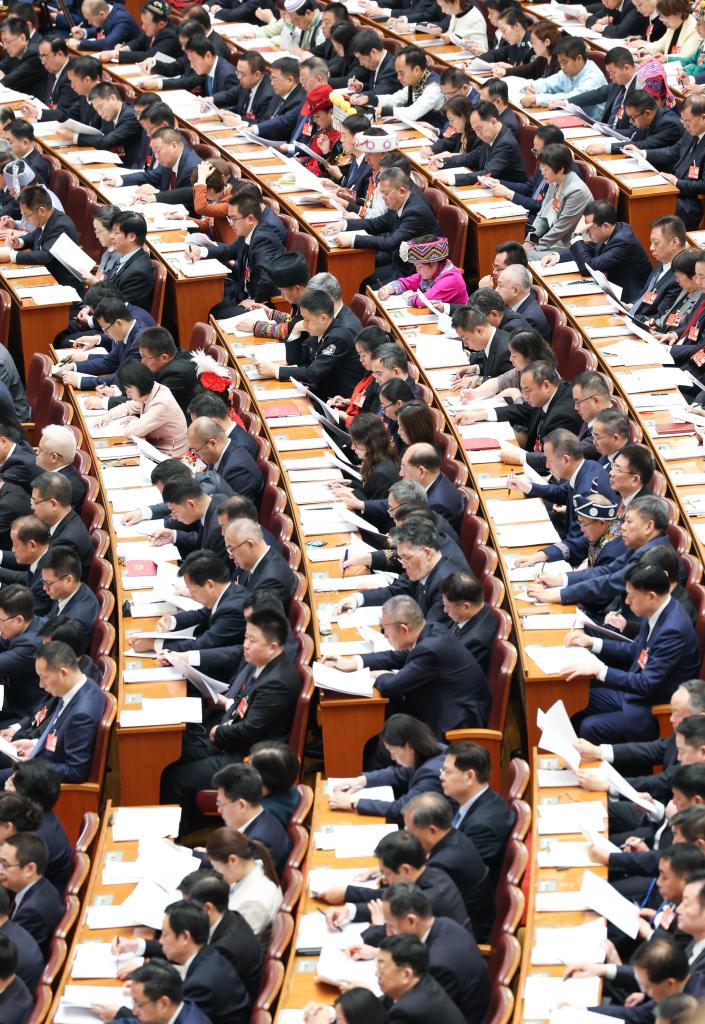 3月8日,十四屆全國(guó)人大三次會(huì)議在北京人民大會(huì)堂舉行第二次全體會(huì)議。新華社記者 申宏 攝