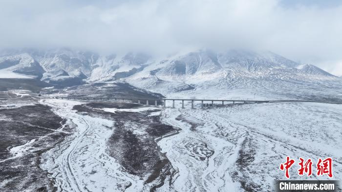 驅(qū)車(chē)行駛在云霧繚繞的灰白色山間,祁連山的蒼勁脈絡(luò)被積雪覆蓋,蘭新高鐵穿山而過(guò),好像走進(jìn)郭金萍描繪的水墨畫(huà)卷中。