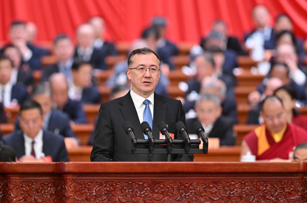 3月8日,全國政協(xié)十四屆四次會議在北京人民大會堂舉行第三次全體會議。這是伊力扎提·艾合買提江委員作題為《新時代新征程積極推進中華民族共同體建設》的發(fā)言。新華社記者 張領(lǐng) 攝