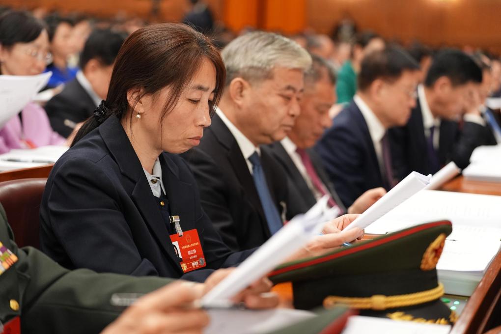3月5日,張瓊麗代表在十四屆全國人大四次會(huì)議開幕會(huì)上聽會(huì)。新華社記者 邢廣利 攝