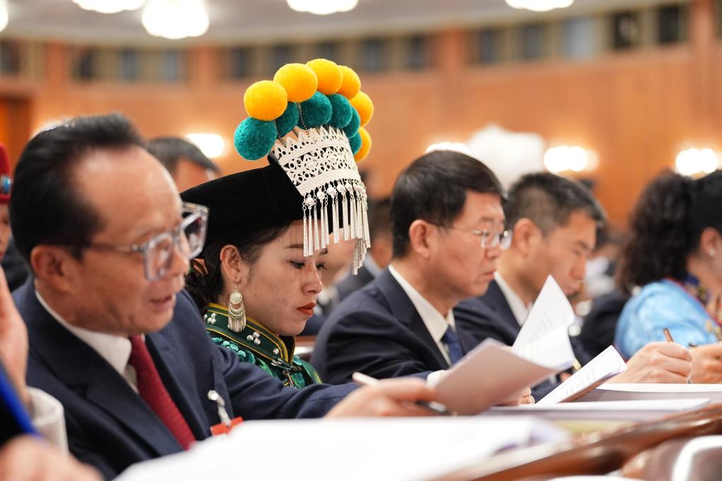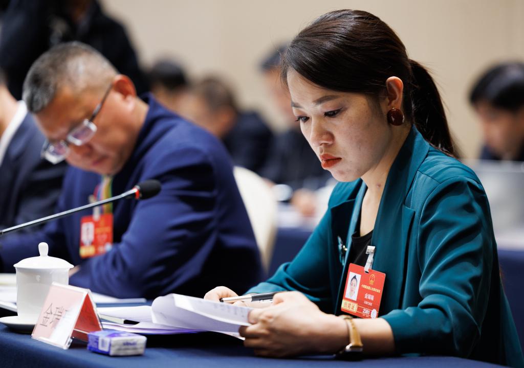 3月6日,金瑞瑞代表在駐地參加分組審議?!⌒氯A社記者 金立旺 攝